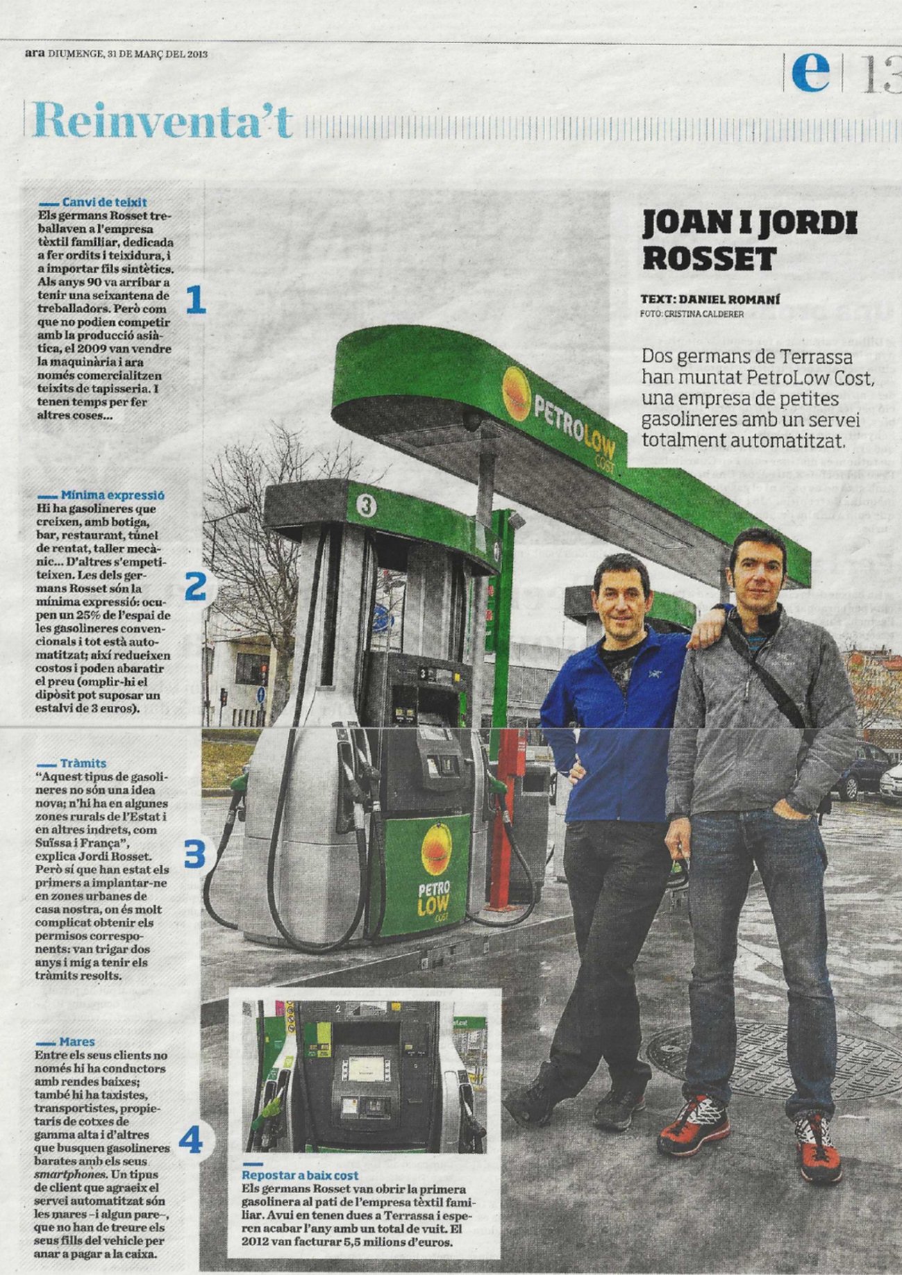 Els germans Rosset van obrir la primera gasolinera al pati de l’empresa textil familiar. Avui en tenen dues a Terrassa i esperen acabar l’any amb un total de vuit. El 2012 van facturar 5,5 milions d’euros.